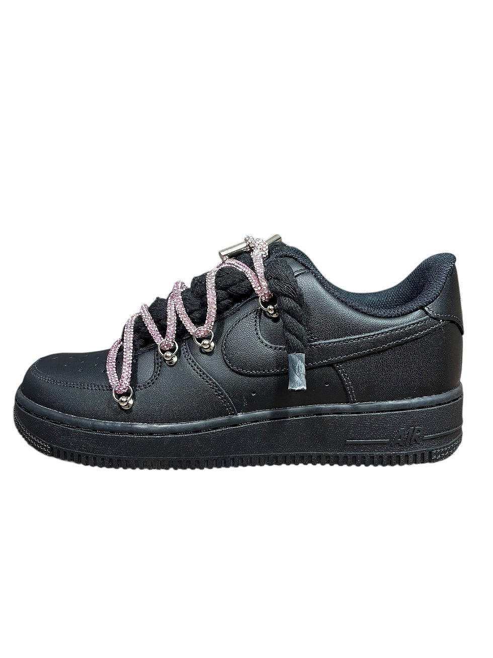Nike Air Force 1 Low Black Double Rope Laces Black/Pink Chain